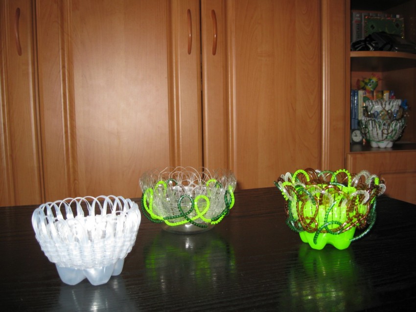 Тару с материалом средней жесткости или более жестким пластиком можно нарезать на тонкие ленты, толщиной около 7 мм.