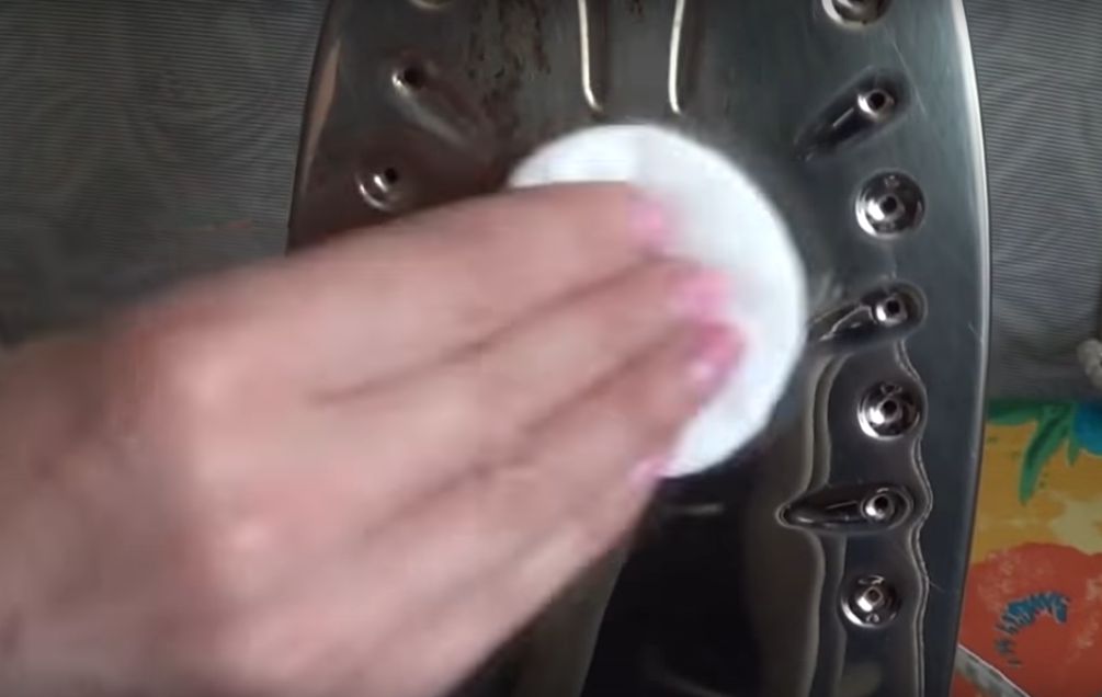 Очищая паровой утюг при помощи этого вспомогательного средства, необходимо предварительно окунуть их в натуральный уксус (9 %), что повысит эффективность борьбы с загрязнениями на подошвы утюга.
