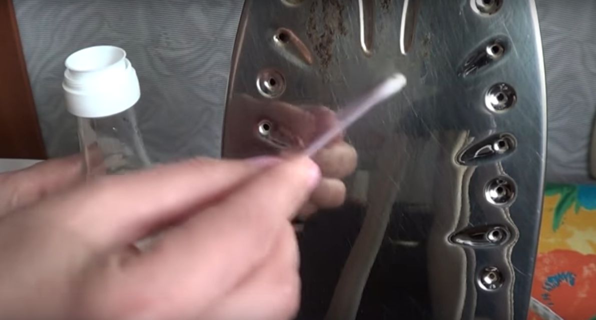 Данные меры безопасности безоговорочно относятся и к следующему способу очистки загрязнений днища утюга.