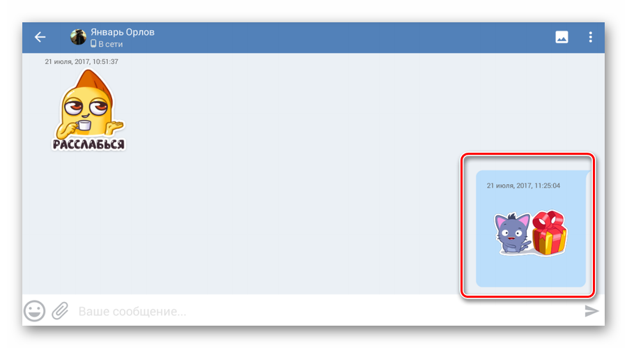 Отправьте какую-либо наклейку, чтобы убедиться в работоспособности данного метода.