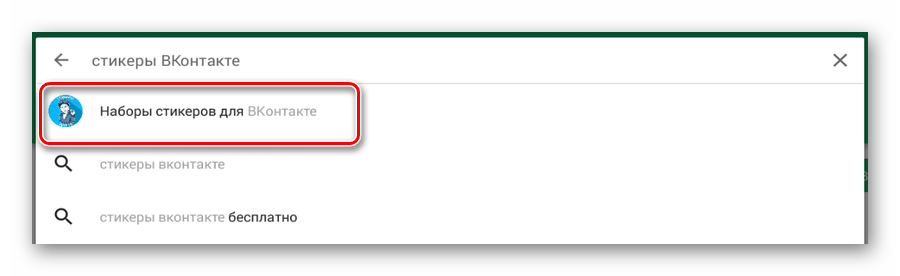 В качестве первой же подсказки вам будет представлено приложение «Наборы стикеров для ВКонтакте», на страницу которого необходимо перейти.