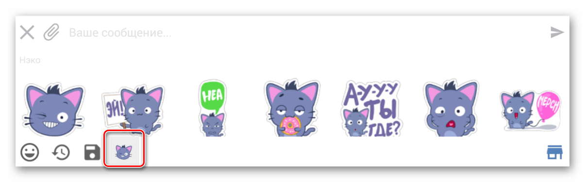 Теперь переключитесь внизу на вкладку со скачанным набором и смело используйте наклейки.