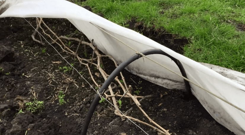 С началом заморозков виноградные рукава снимают с опор. От небольших низких температур лозу прикрывают нетканым материалом.