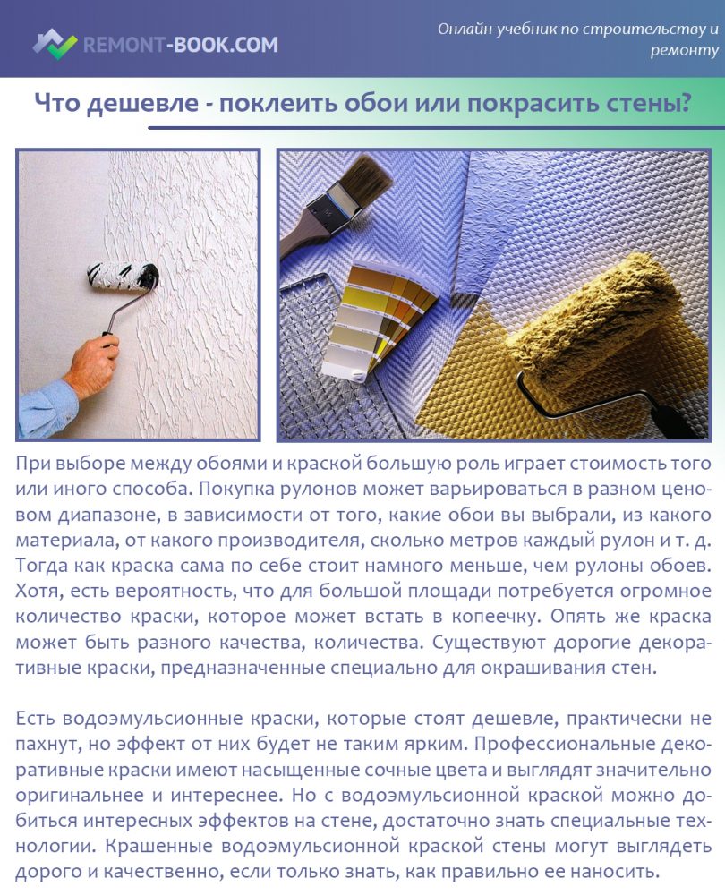 | Возможность нестандартно оформить помещение | Оформить стены при помощи краски можно в какой угодно цвет, придать им всевозможный оттенок и, как вариант, даже расписать их краской на заказ или самостоятельно. Обои же предполагают нанесение определенного рисунка, который уже имеется на них. Разумеется, речь не идет об обоях под покраску или однотонных вариантах. Но что касается последних, то гораздо больше оттенков цвета предлагает именно краска. Плюс ко всему, используя колеры, можно самостоятельно подобрать нужный оттенок. |