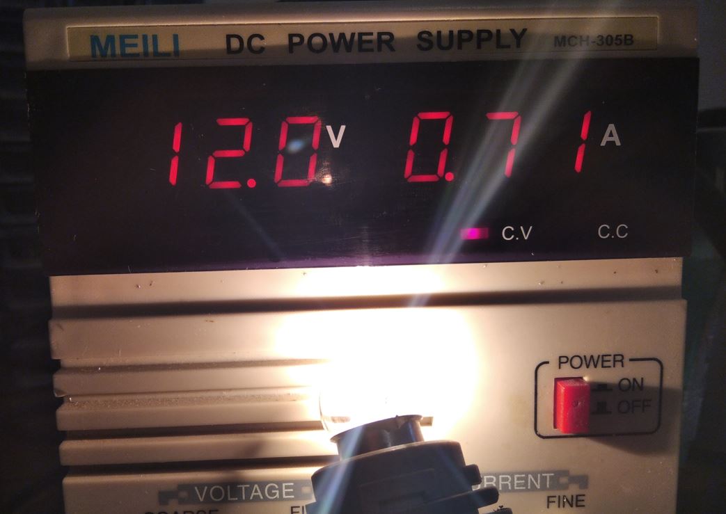 Итак, получается, что на выводах лампы сейчас напряжение 12 Вольт, а ток, который течет в цепи, а следовательно и через лампу 0,71 Ампер.