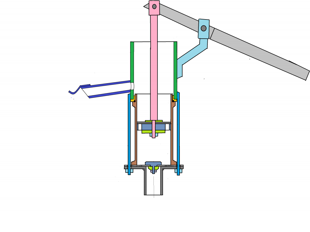Внутри расположен цилиндр и поршень. Когда поршень поднимается, под ним создается разряженная полость, в которую всасывается вода.