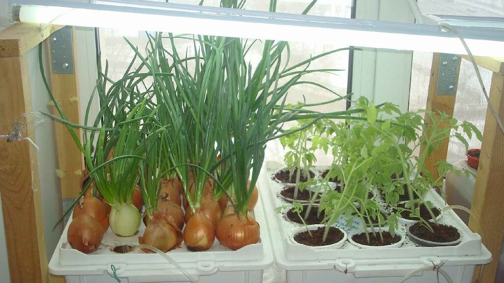 Лук очень требователен к свету. Для нормального развития растениям необходим световой день 12-14 часов в сутки. При нехватке света, перо будет слабым, бледным и сильно вытянется. Компенсируют недостаток освещения с помощью люминесцентных ламп белого и дневного света.