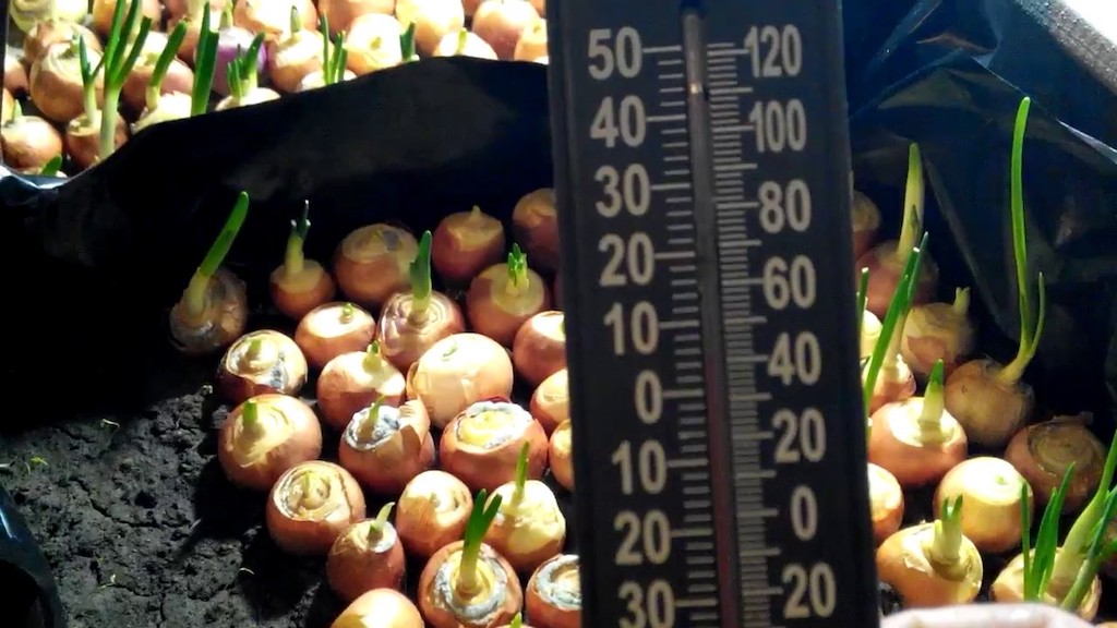 Оптимальная температура для выгонки зимой зелени лука на подоконнике 20-25 °С. При более низкой температуре перо лука растет медленнее, но вырастает сочной и без горечи. При высокой – зелень образовывается чуть ли не вдвое быстрее, но она тонкая, бледного цвета и с горчинкой.