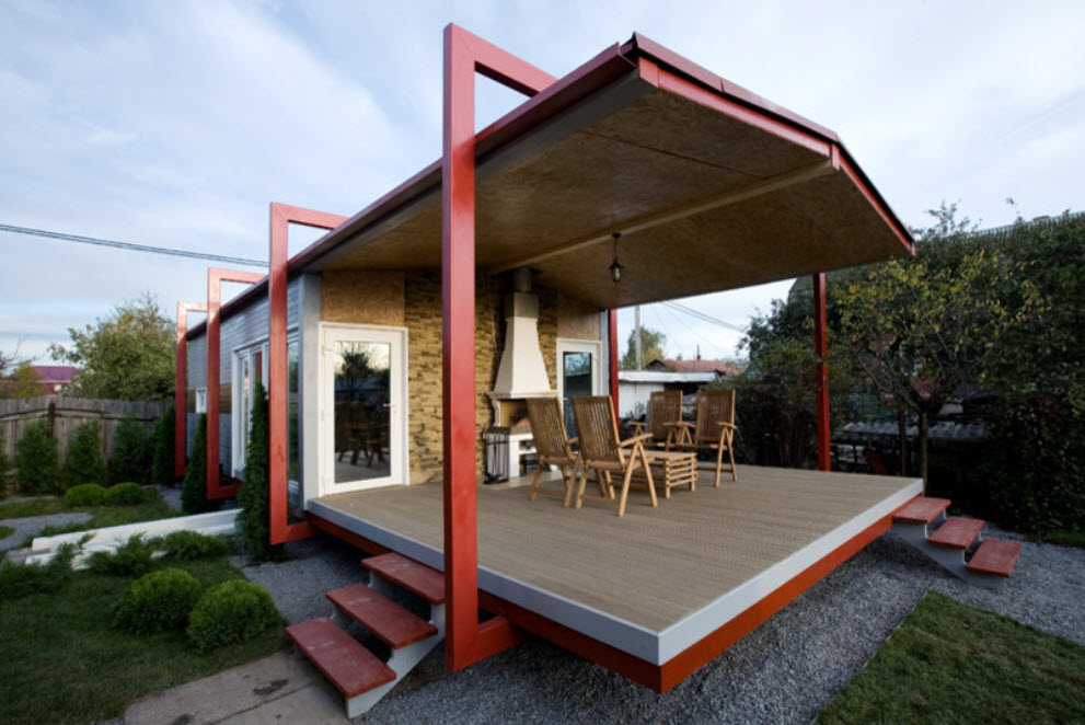 Также оптимальным вариантом будет домик в стиле хай-тек. Актуальной остается и тема с домами-близнецами. На земельном участке ставятся два домика, один из которых является уменьшенной копией второго. Такие дома особенно популярны для тех, кто любит отдыхать большой компанией, ведь можно меньшую часть отдать под гостей, при этом, не стесняя друг друга.