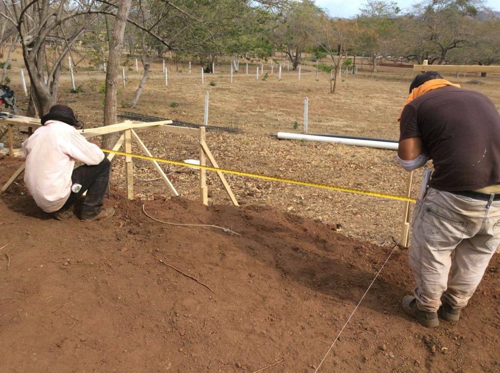После того как площадка подготовлена, делается разметка. Для этого необходимо взять 4 колышка, в качестве которых лучше использовать арматурные прутки. Поставить один в землю, обозначив первый угол, от него отмеряется длина и ширина строения и устанавливаются остальные 3 колышка и соединяются веревкой по периметру. В результате должен получиться прямоугольник или квадрат (в зависимости от проекта). Углы должны быть прямыми. Чтобы проверить точность, следует соединить противоположные колышки веревкой, при этом обе диагонали должны быть равны между собой.