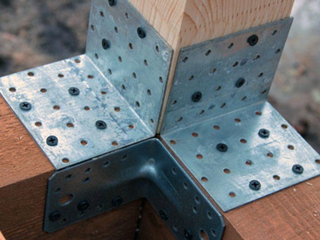 Для усиления соединений стоек и балок желательно использовать накладные металлические элементы – пластины и уголки.