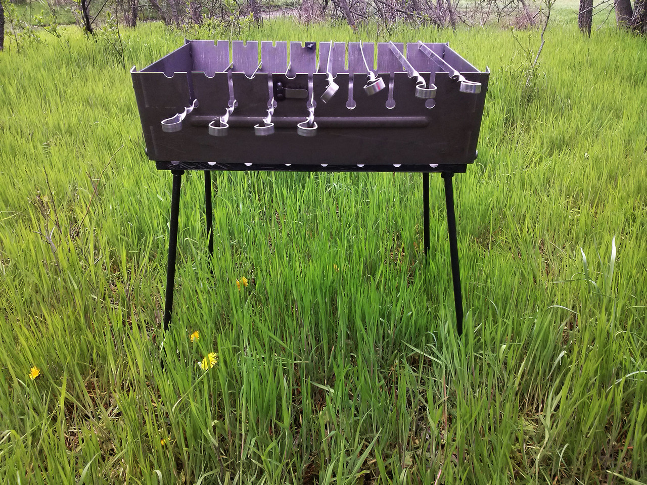 Мангал на две решетки с перегородкой в жаровне. Высокие съемные ножки