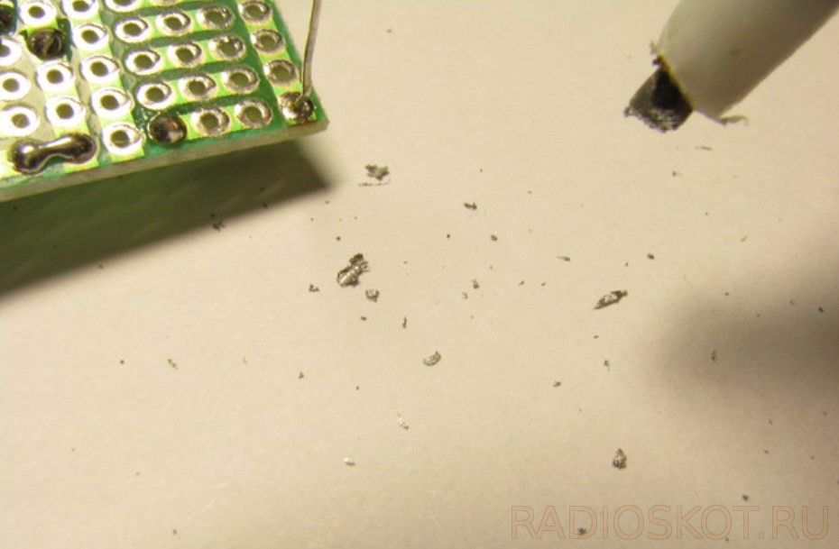 Для этого надо очистить выводы детали от пленок. Можно сделать это при помощи монтажного ножа или ученической стирательной (жесткой) резинки. После зачистки выводы должны приобрести металлический блеск.