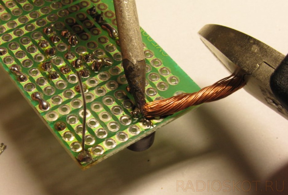 После операции лужения вывод не должен заметно увеличить толщину. Если он заметно «потолстел», надо удалить лишний припой разогретым паяльником.