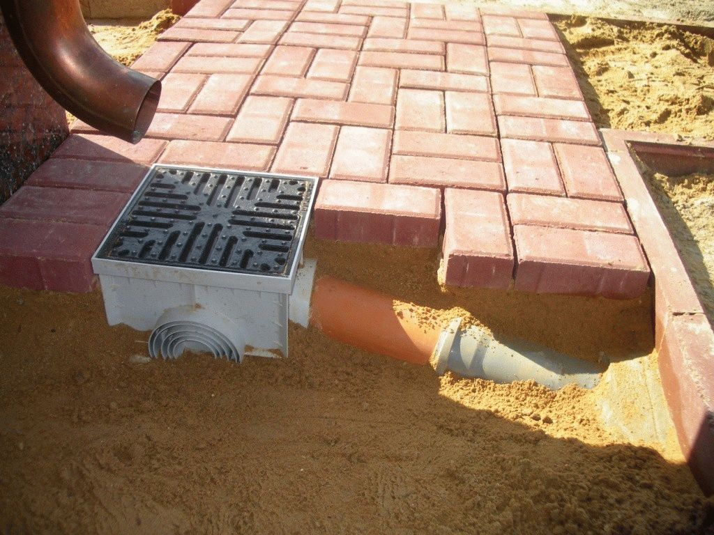 Тротуарная плитка или брусчатка, бордюры и элементы ливневой канализации.