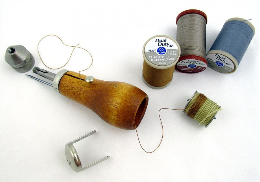 Можно чинить снарягу в походных условиях. Благодаря кривой игле можно зашить даже обувь. Можно заняться изготовлением различных поделок из кожи, типа чехлов и ножен. Шить таким шилом гораздо быстрее, чем в две иглы.