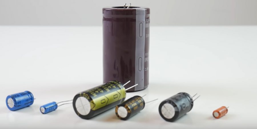 Как следует из названия, электролитические кондеры в алюминиевом корпусе наполнены электролитом между обкладками. Габариты самые разные — от миллиметров до десятков дециметров. Технические характеристики могут превышать таковые у неполярных на 3 порядка и достигать больших величин — единиц mF.