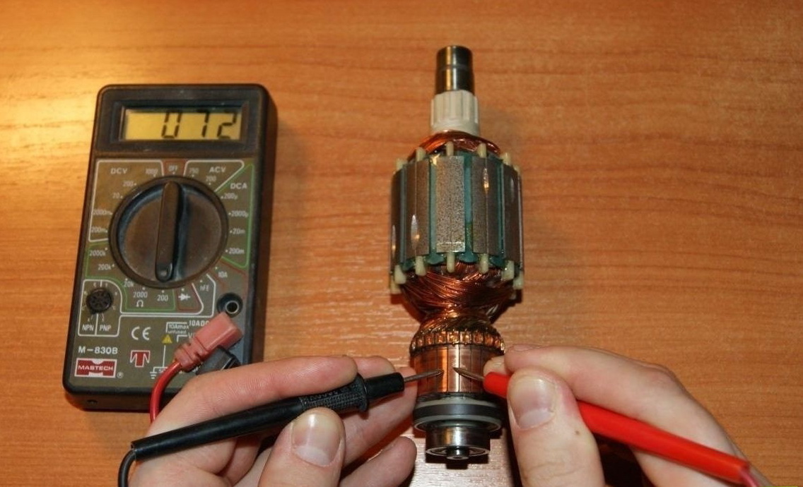 Ротор коллекторного электродвигателя состоит из значительно большего количества обмоток, но проверка якоря не займёт много времени.