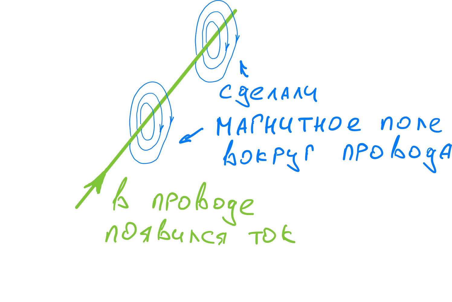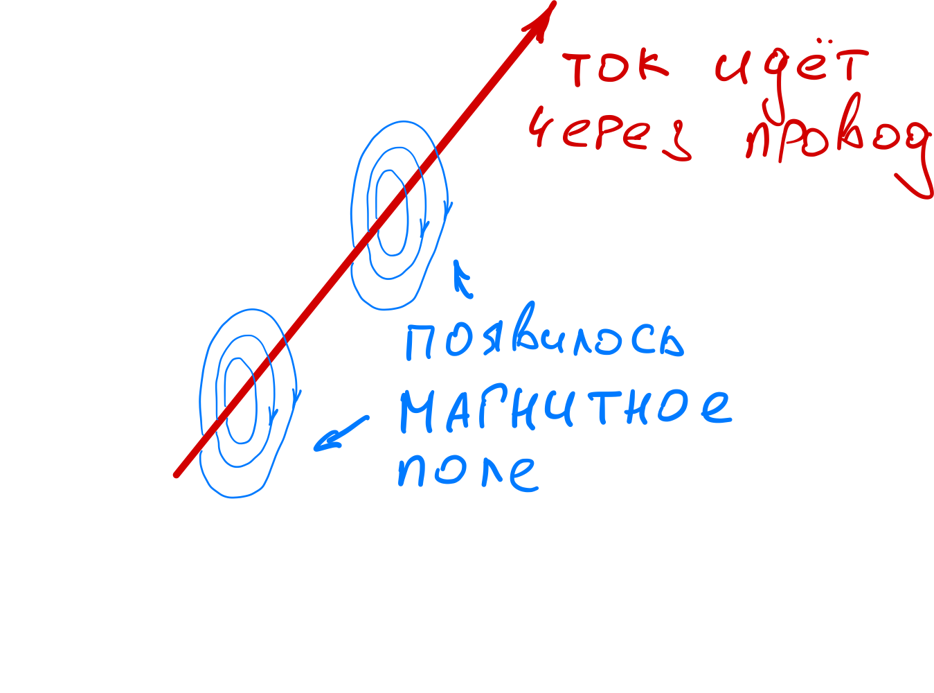 когда по проводу идёт ток, вокруг провода образуется магнитное поле.
