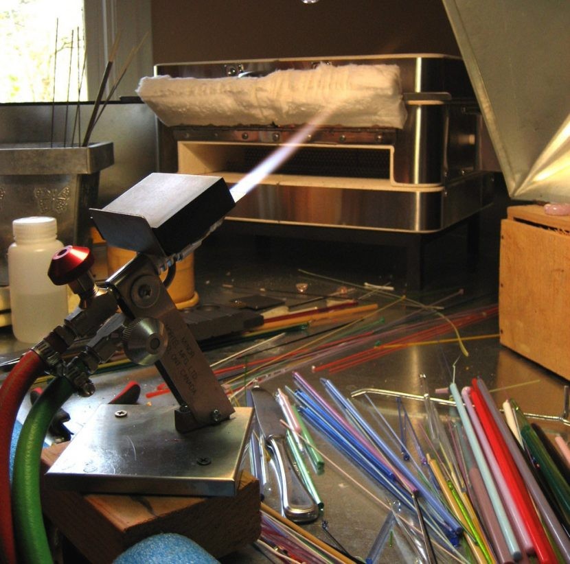 Новички обучаются лэмпворку при помощи мастер классов для начинающих. Практически все начинающие мастера создают рабочую зону у себя дома. Для изделий в технике лэмпворк в домашних условиях потребуются специальные инструменты и материалы: