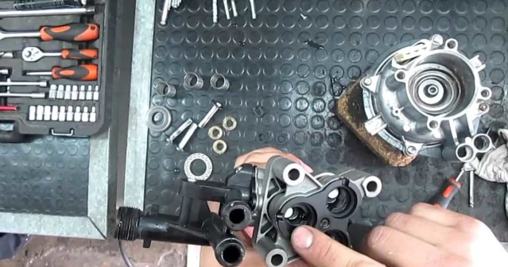 - поломке пружины или клапана, который обеспечивает постоянное давление и контролирует работу мотора.
