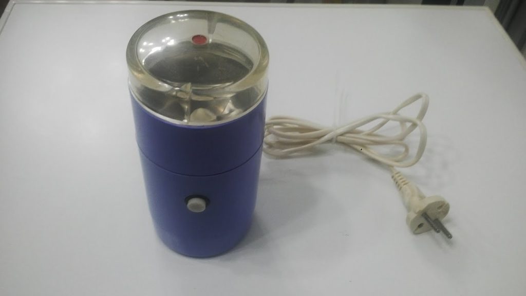 Наиболее распространенный тип электрических кофемолок – с ножевым или роторным механизмом. Такая популярность объясняется простой конструкцией и доступной ценой. Зерна измельчаются при вращении двух ротационных ножей. По принципу своей работы устройство напоминает блендер. Роторная кофемолка состоит из двух частей: двигателя и чаши с ножами. В емкость загружают необходимое количество зерен, плотно закрывают ее крышкой и запускают помол.