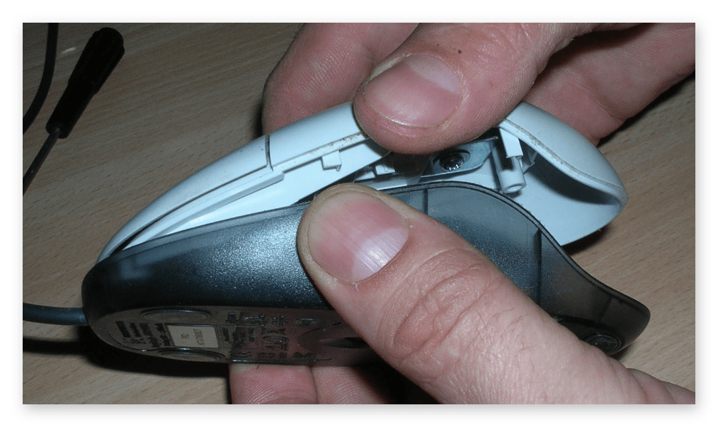 Часто попадаются устройства с одним болтом на одной стороне корпуса. Вторая сторона фиксируется с помощью защелок. Если шурупов вообще не видно, значит, по периметру есть защелки. Чтобы разобрать мышку, нужно на них слегка надавить.