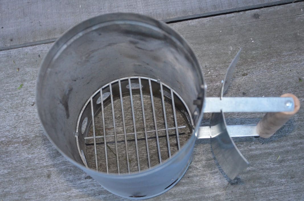 Стартер розжига угля действительно похож на кружку с дном-поддувалом. Рассчитывайте объем: в стартер должен поместится весь уголь, что нужен для мангала. В крайнем случае, для больших жаровен, нужно использовать 2 кружки.