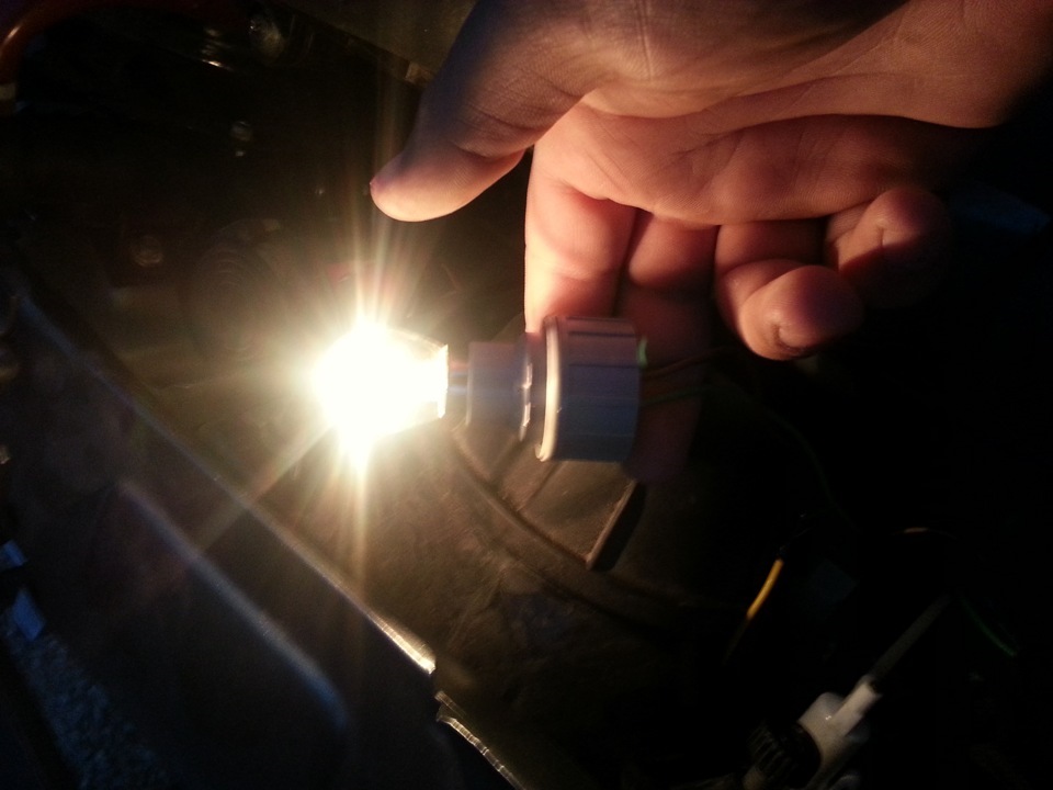 - плюсовой провод от лапочки соединяем также с плюсом поворотных фар;