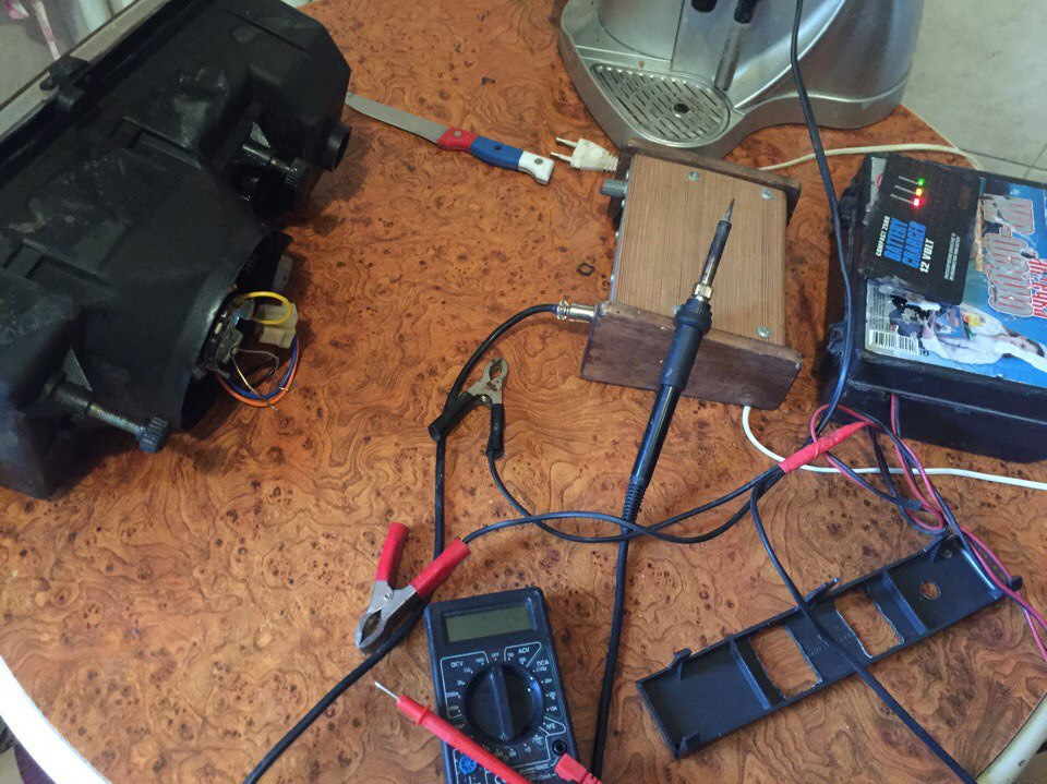 - Далее будем подключать провода к лампочкам. С помощью паяльника выполняем припаивание: