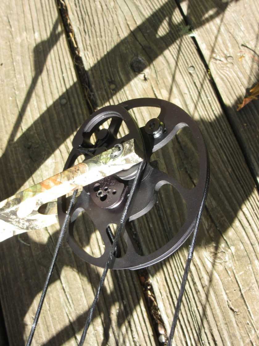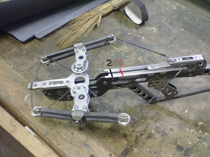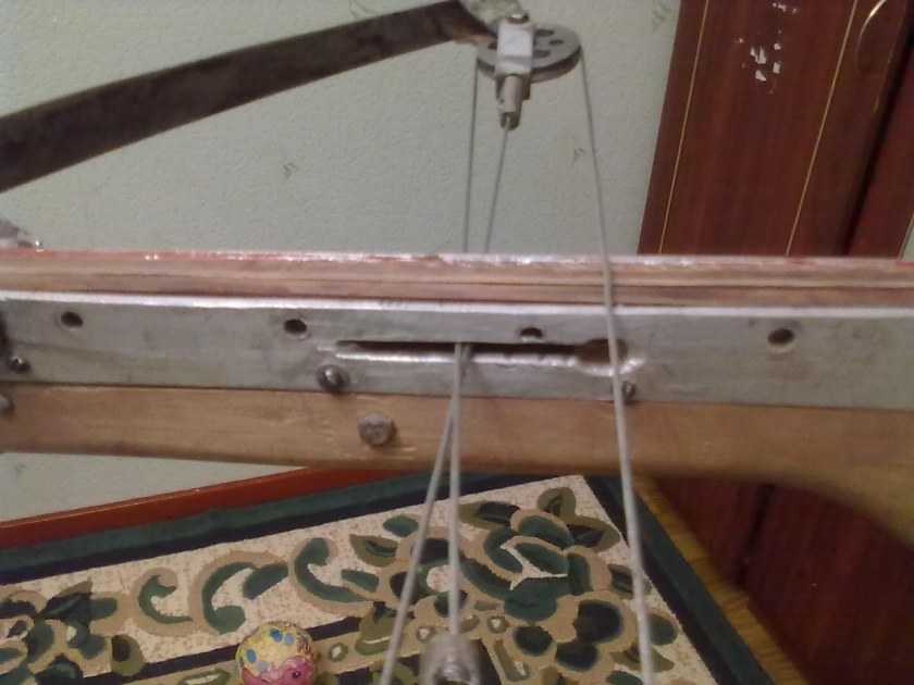 Тетиву остается врезать в плечи. Но если последние предусматривают ролики, то веревка для изготовления жесткого троса должна быть в 2,5 раза длиннее. Причем обматывать придется всего четыре нити, а не восемь. Ведь готовую тетиву придется просовывать в узкие щели, что между роликами и их корпусами.