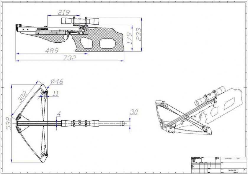 Собрать классический вариант арбалета своими руками несложно. Для этого можно использовать следующую схему:
