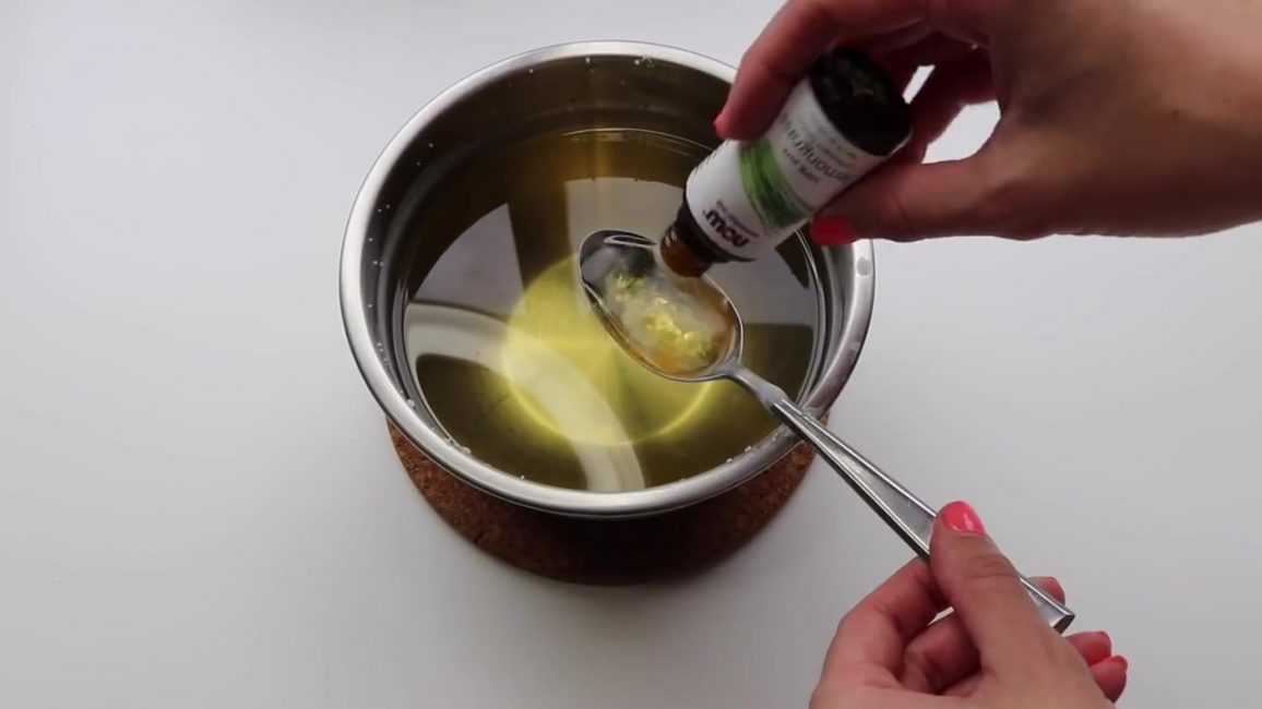 3. Снимите воск с плиты и дайте остыть до 50 градусов. После этого добавьте ароматизирующее вещество — ванильное ароматическое масло или лаванду.