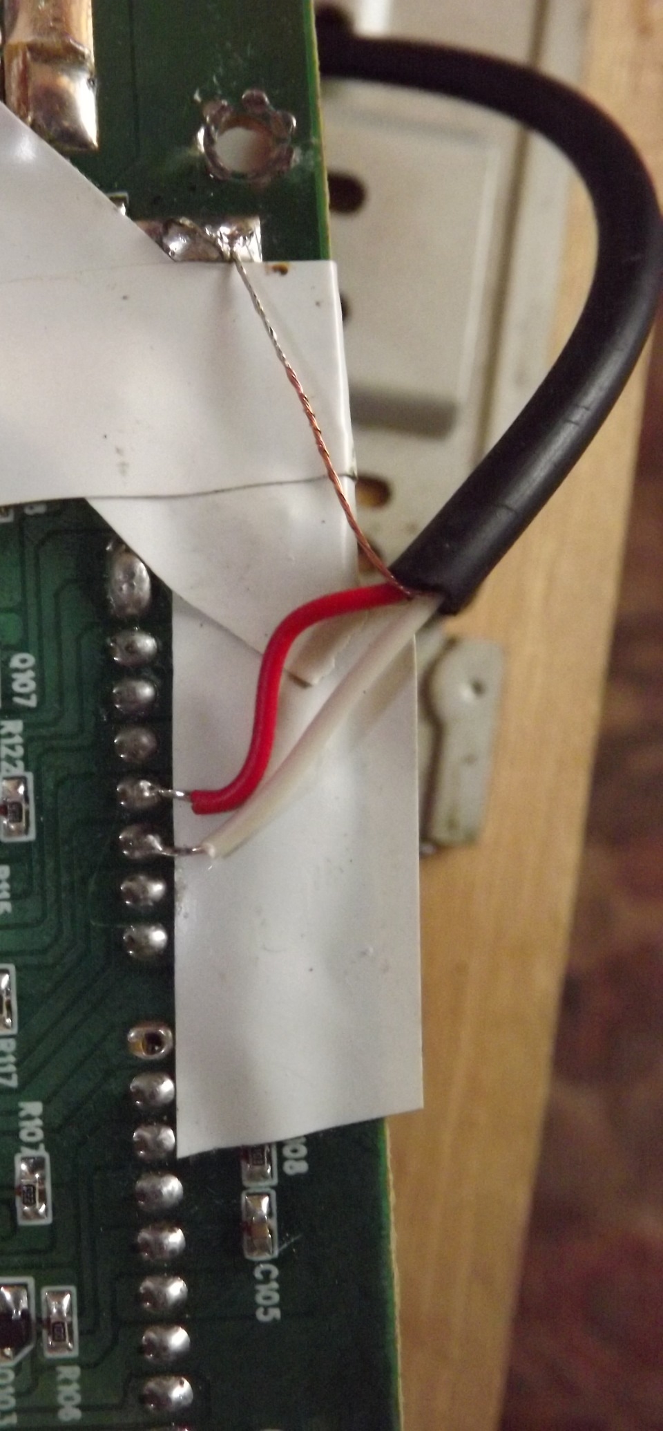 Под провода я приклеил изоленту чтобы их не замкнуло на другие контакты схемы.И выводим шнур за корпус магнитолы.