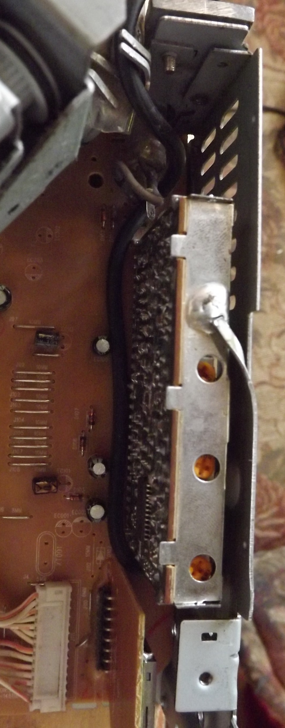 Провод плейера отпаивается, а на его место крепят планку, а от нее кидают экранированные провода туда, где в магнитоле микросхема с местами в 12В.