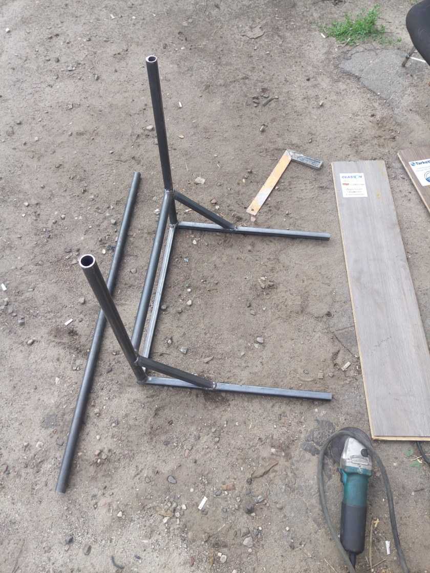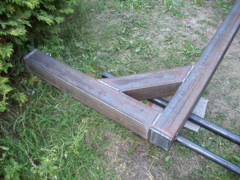 Берем болгарку и пилим профильную трубу на кусочки необходимой для нас длины. Угловые повороты составляют примерно 50 градусов и делаются на глаз. Свариваем будущий турник.