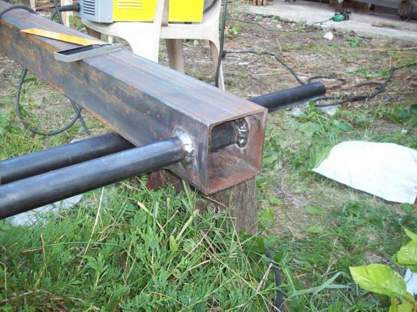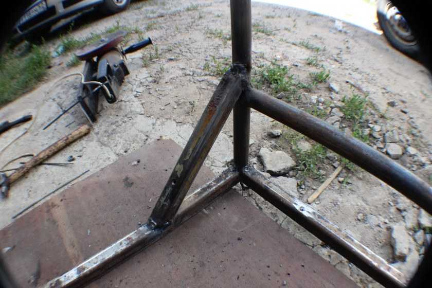 Используем обрезки от труб чтобы сделать ручку и привариваем ее внизу. Ее можно будет использовать для проработки пресса.