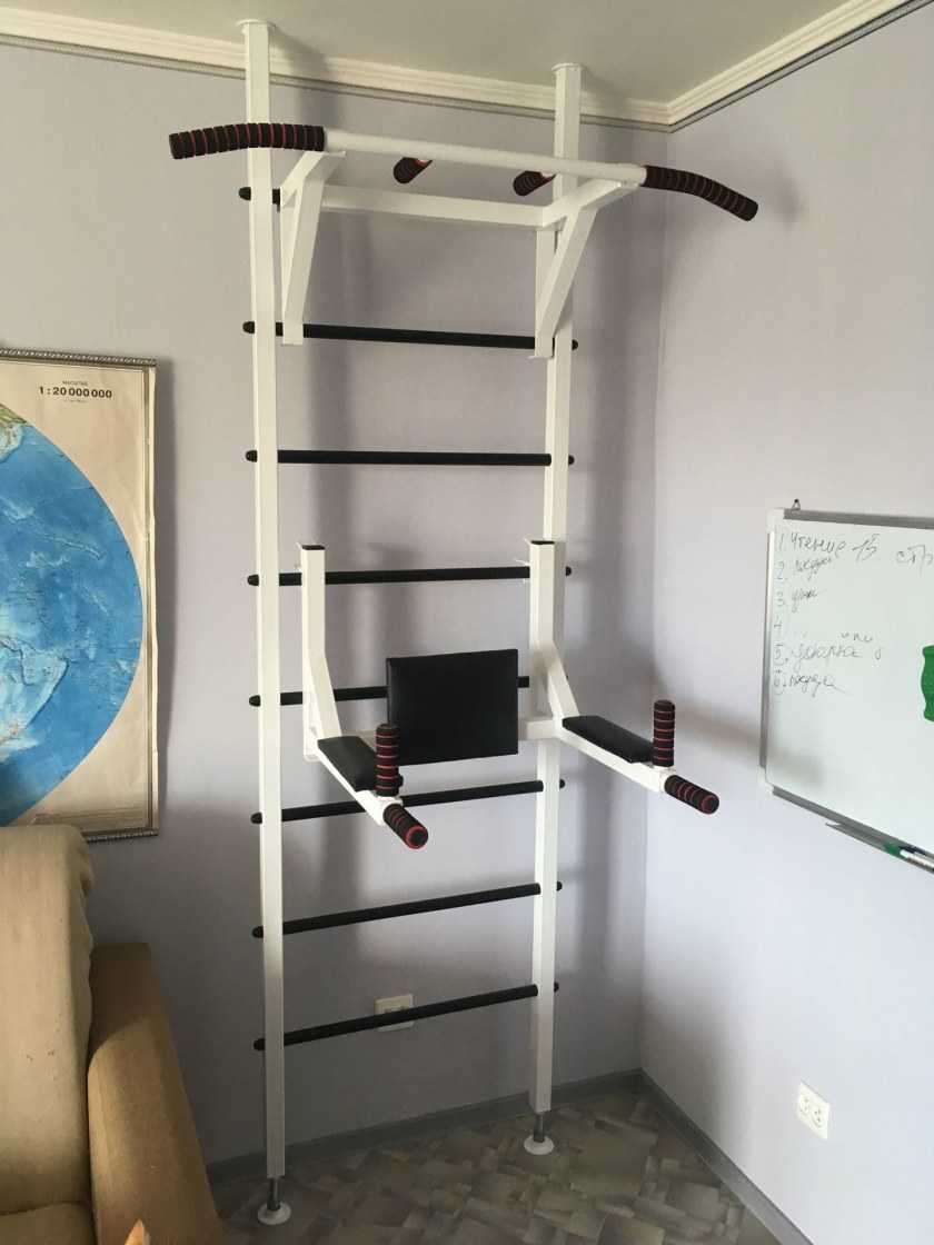 В условиях городской квартиры распространены два вида турника – навесной на шведскую стенку или с закреплением к стене.