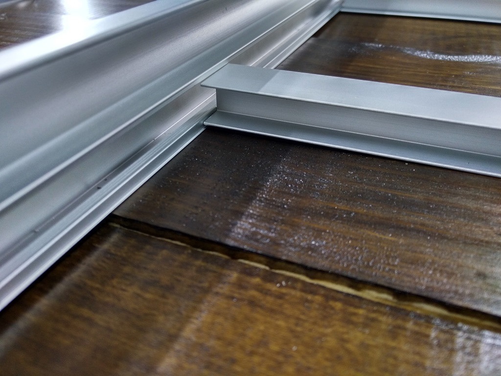 Цена на такие изделия не дешевая. Из него производят рамы для рельсов и дверных полотен. Такие двери имеют плавный ход, не издают звуков во время работы, обладают отличными эксплуатационными параметрами.