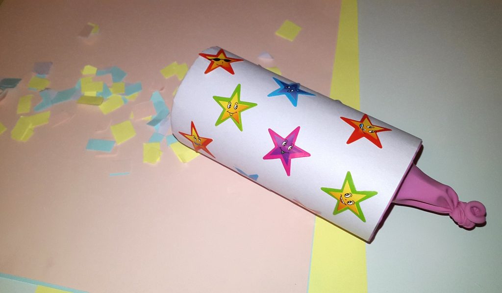Это еще один вариант праздничной хлопушки, ее преимущество заключается в безопасности и многоразовом использовании. Если вы хотите, чтобы ребенок получил не только праздничное настроение, но и массу позитивных эмоций, то вам нужно узнать, как сделать эту хлопушку из бумаги.