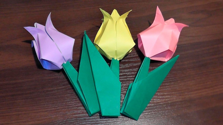 Таких тюльпанов можно сделать множество и украсить ими окно в комнате или школе, поставив в вазу, которую тоже можно сделать из бумаги в стиле оригами.