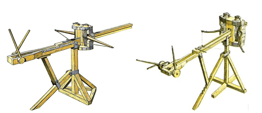 Искусство стрельбы из метательных машин (греч. «katapaltai») было описано еще примерно в 350 году до нашей эры античным греческим писателем Энеем Тактиком в трактате об осадном искусстве.