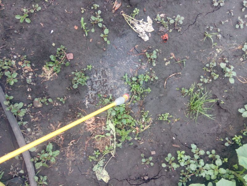 Если вода будет попадать непосредственно к корням культурных растений, сорняки в междурядьях погибнут от нехватки влаги – им ведь тоже надо «пить». В крайнем случае поливайте из лейки без распылителя под корень – медленно, чтобы вода не растекалась.