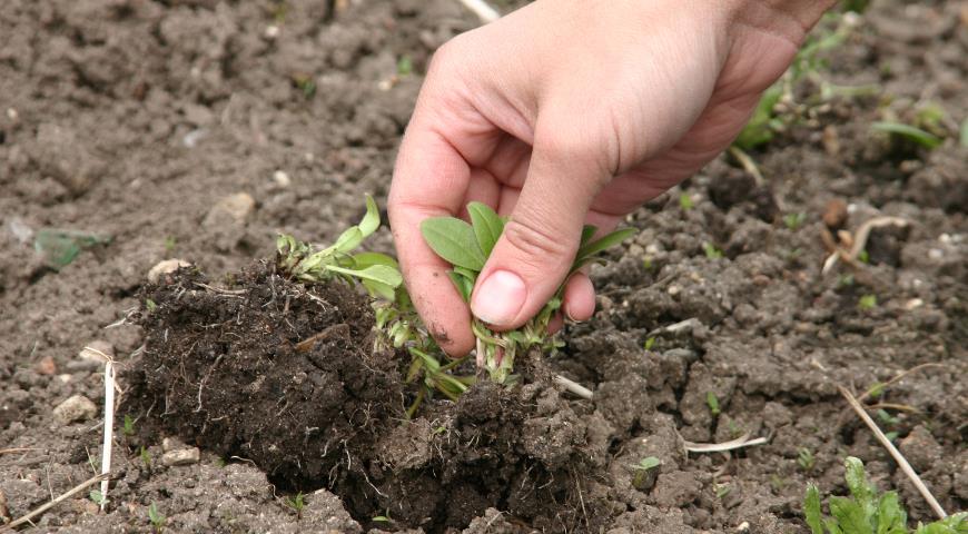 Удаление сорняков вручную легче всего проводить из влажной земли после дождя или полива