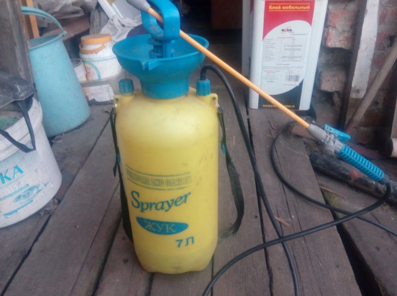 2. Далее приобрёл опрыскиватель. Здесь дорогой брать не стал, в этом нет ни какой необходимости. Да и ещё, кому интересно, его можно применять не только для распыления химии на траву, но и в строительстве для обработки древесины от грибка и грунтовки стен от пыли. Вообщем вполне нужная вещь.