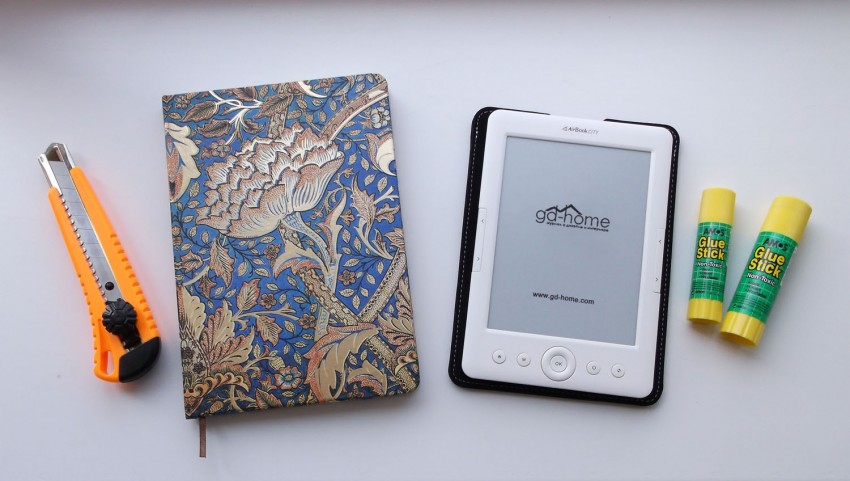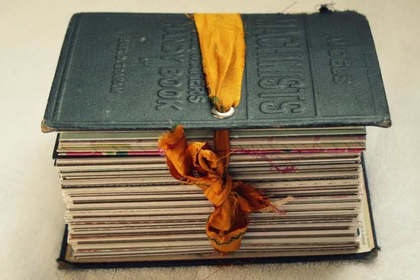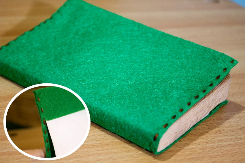 Текстурная коричневая бумага вроде той, что используется для конвертов, также интересно выглядит на самодельной книге. Создать такую обложку довольно легко – нужен карандаш и линейка для замеров. Лист бумаги должен выступать над книгой так, чтобы оставались уголки, которые можно подогнуть. Все остальное отрезают, а уголки загибают.