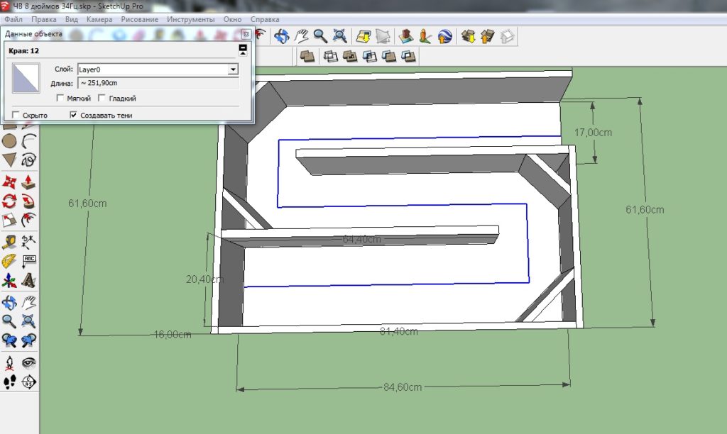 Имея на руках параметры корпуса для саба (объем, площадь и длина порта), можно сделать чертеж самостоятельно, воспользовавшись специальными программами (на мой взгляд SketchUp от Google самая удобная для этого). Но если короб делается для себя, то нет смысла тратить время на изучение софта и сделать все по старинке — от руки.