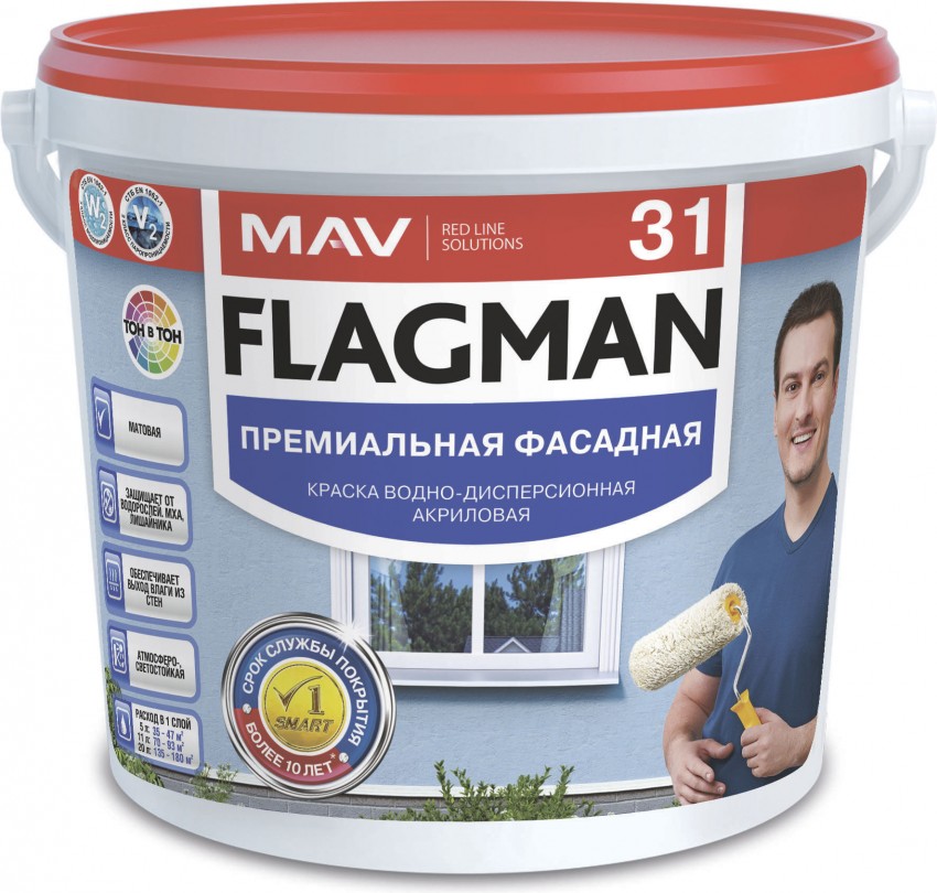 Фасадная краска используется в основном для покраски строений или домов. Её главная особенность заключается в том, что после нанесения и засыхания краска становится плёнкой, прочно скреплённой с основанием, и может достигать толщины от 5 см до 50 см.