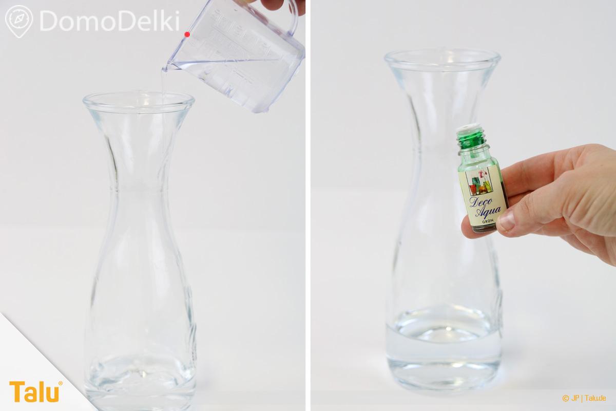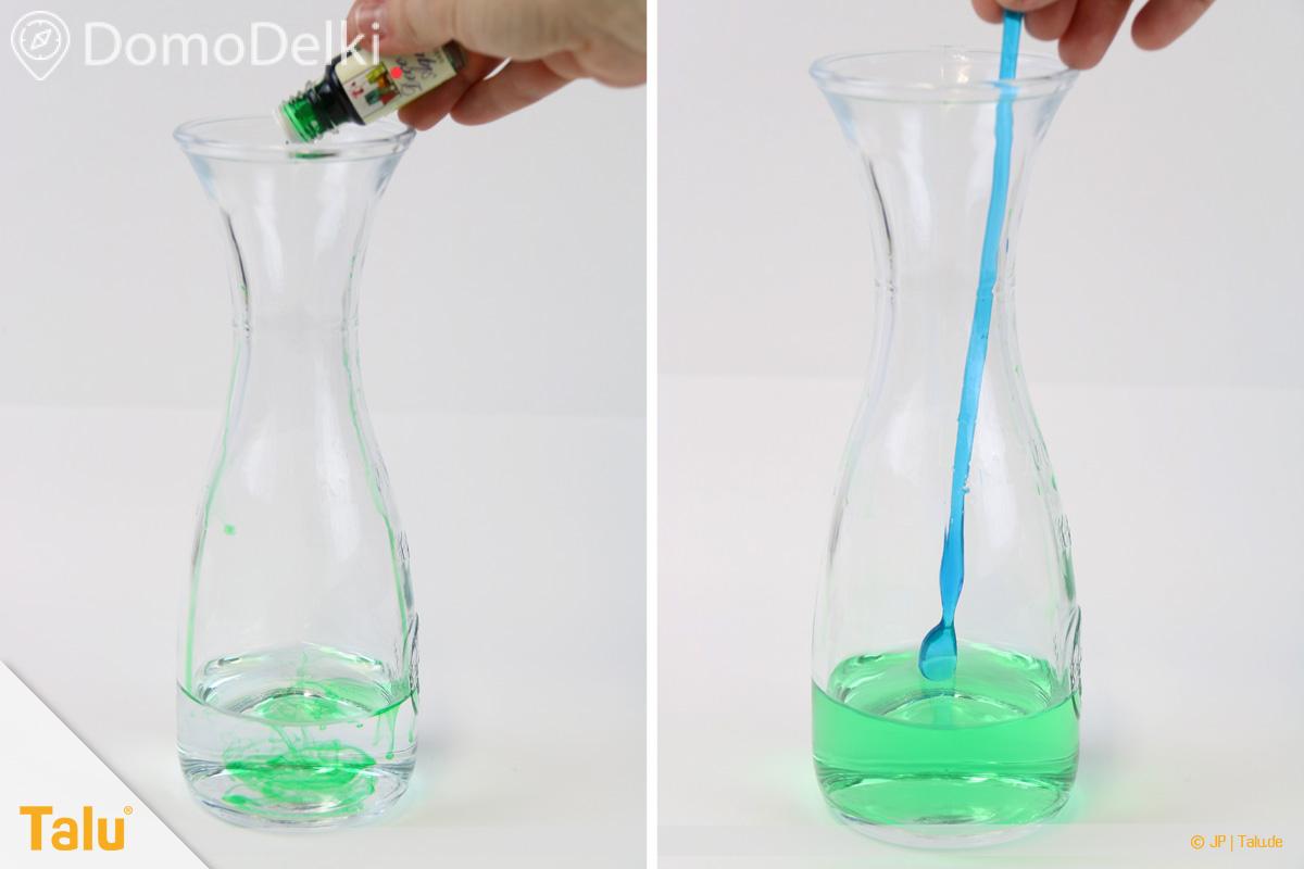 2-й шаг: теперь вода окрашена. Добавьте немного воды цвета деко или жидкого пищевого красителя в воду и хорошо перемешайте с помощью мешалки или длинной ложки.
