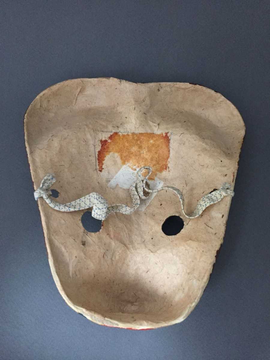 Хорошо высохшую маску снимаем и оставляем досушиваться как минимум на ночь. На батарее, при хорошей температуре, можно пересушить изделие, поэтому лучше положить вблизи обогревательного прибора, а не на него непосредственно. Для целостности формы вовнутрь можно разместить валик из ткани, чтобы маску не скрутило.